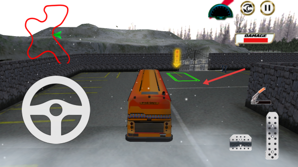 3、操控巴士,循著紅色路線,精準(zhǔn)駛?cè)刖G色停車區(qū),順利完成停車任務(wù)。