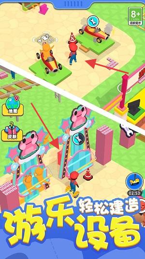 2、在建造區(qū)域,選擇游樂(lè)設(shè)備(如過(guò)山車、旋轉(zhuǎn)設(shè)施等),消耗材料搭建,拓展樂(lè)園游玩項(xiàng)目。