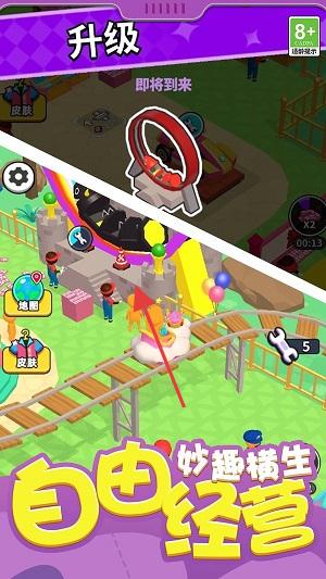 1、進(jìn)入游戲,點(diǎn)擊“升級(jí)”界面,消耗資源提升游樂(lè)設(shè)施等級(jí),解鎖新內(nèi)容,豐富樂(lè)園體驗(yàn)。