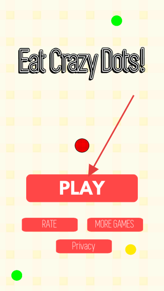 1、在游戲主界面,點(diǎn)擊【PLAY】按鈕,進(jìn)入【Eat Crazy Dots!】游戲,開始吞噬dots挑戰(zhàn)。