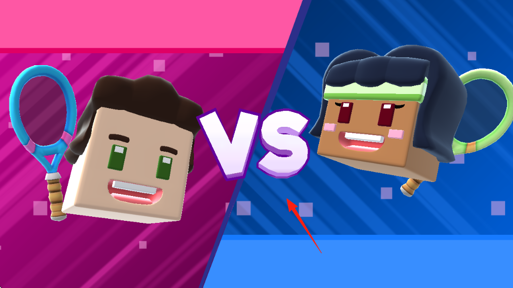1、對(duì)戰(zhàn)匹配匹配對(duì)手(男女角色),持網(wǎng)球拍,進(jìn)入“VS”對(duì)決,場景分粉藍(lán)兩色,強(qiáng)化競技氛圍。