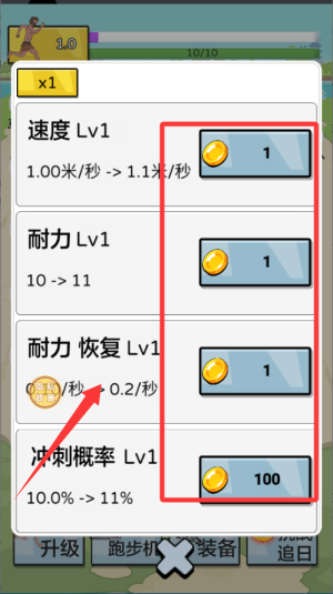 2、資源管理要點(diǎn),金幣用于升級屬性和購買裝備,鉆石解鎖特殊技能。合理分配資源,優(yōu)先提升核心奔跑能力。