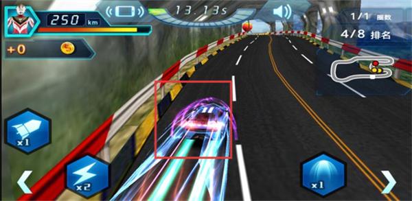 2、游玩的過程中通過方向盤操控賽車行駛,在彎道漂移積累能量,觸發(fā)奧特曼鎧甲技能對抗賽道上的怪獸阻礙。