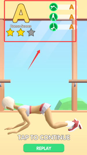1、觀察屏幕角色示范動(dòng)作,通過觸控操作準(zhǔn)確模仿相應(yīng)舞步,系統(tǒng)實(shí)時(shí)判定動(dòng)作標(biāo)準(zhǔn)度。