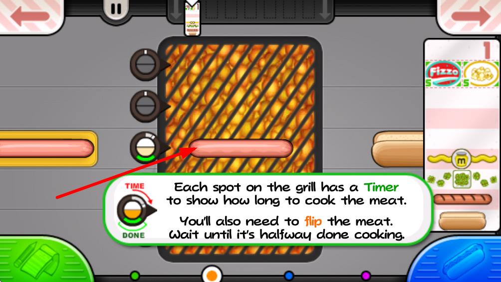 2、按照烹飪指示滑動屏幕完成煎烤香腸、涂抹醬料等操作,再根據(jù)顧客喜好依次添加洋蔥、芝士等配料。