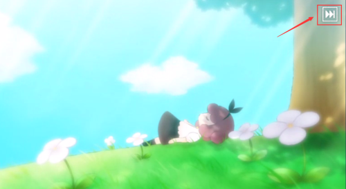 3、點(diǎn)擊紅箭頭指向的按鈕,可以快速跳過劇情畫面。