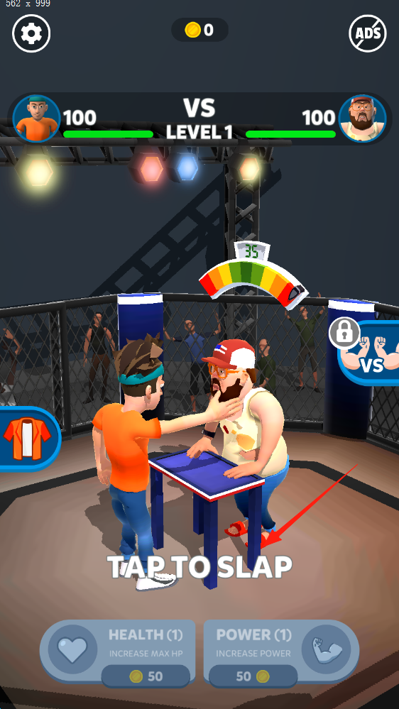 1、進入對戰(zhàn),看準時機點擊“TAP TO SLAP”扇對手,通過指針控制巴掌力量。