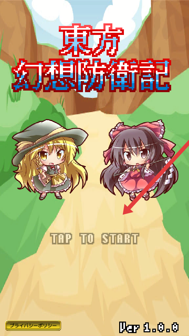 1、進(jìn)入東方幻想防衛(wèi)記的游戲,操控者需要點擊【TAP TO START】的按鈕,開啟冒險之旅。