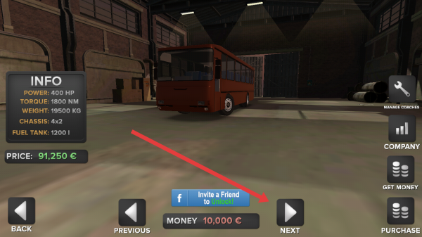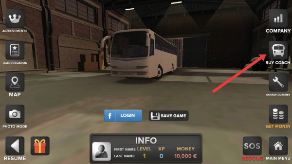 2、在游戲內(nèi)界面,點(diǎn)擊【BUYCOACH】按鈕,進(jìn)入巴士購買界面。