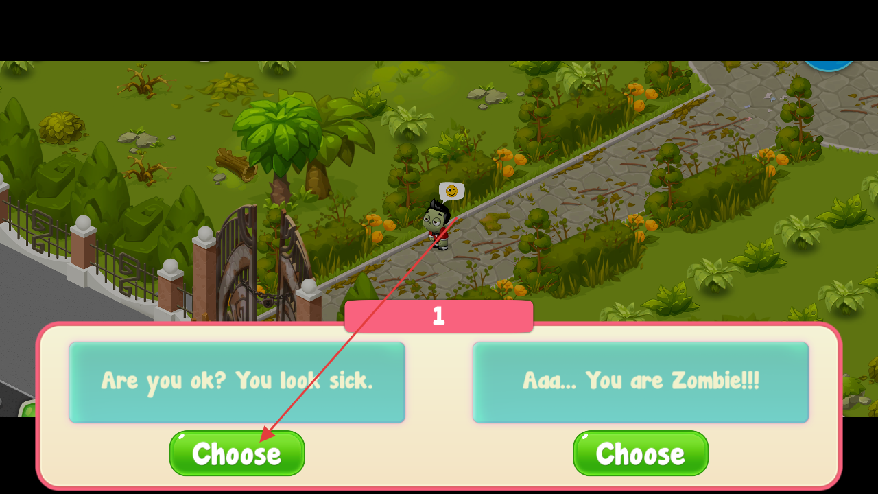 1、點擊“PLAY”進入游戲,在小鎮(zhèn)場景操控角色,遇到僵尸觸發(fā)對話,選擇回應(yīng)(如關(guān)心/識破)。