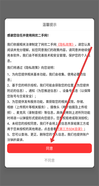 1、打開App后,可以點擊彈窗中的同意按鈕,進入App開始使用。