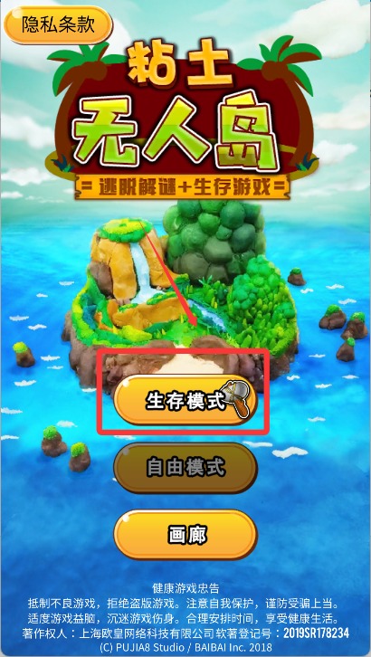 1、進入游戲后點擊屏幕中間生存模式開始游戲。