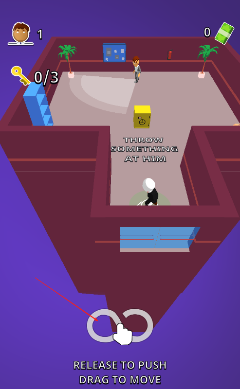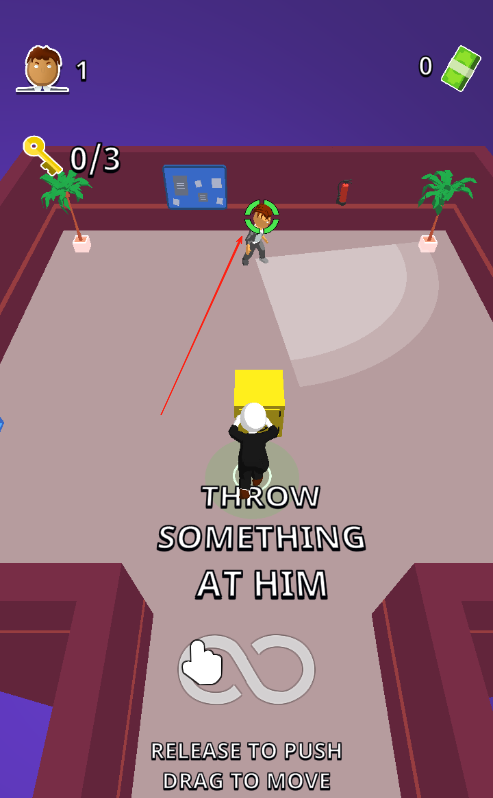 1、進(jìn)入游戲后操控角色在辦公室移動(dòng),點(diǎn)擊屏幕抓取物品,滑動(dòng)屏幕瞄準(zhǔn)同事或老板投擲,初次體驗(yàn)可先熟悉桌椅等基礎(chǔ)物品的投擲手感。