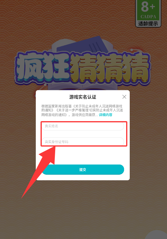 3、輸入真實姓名真實身份證號碼就可以開始游戲了。
