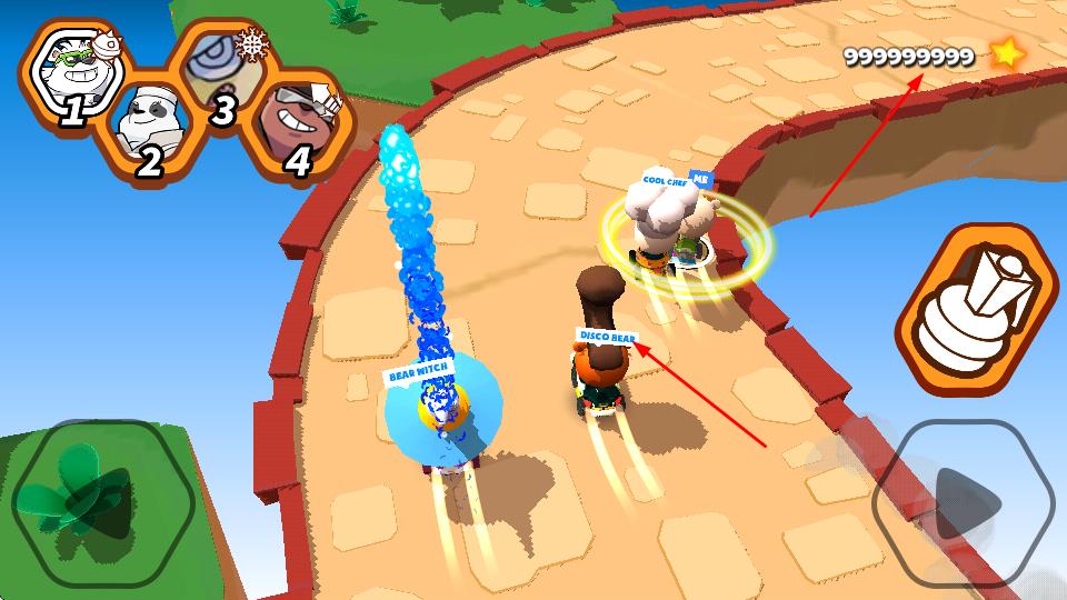 1、與他交鋒競高下:在賽道上展開激烈較量,投擲炸彈阻礙對手,憑借速度與策略爭奪生存機會。交鋒的緊張與勝利的快感交織,讓每一次超越都充滿競技的刺激。