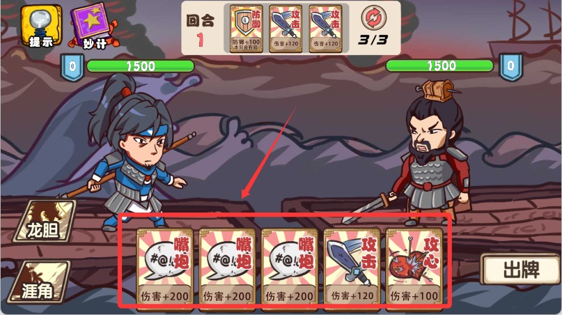 3、開始游戲后我們需要點(diǎn)擊下方卡牌來(lái)出牌擊敗對(duì)手。