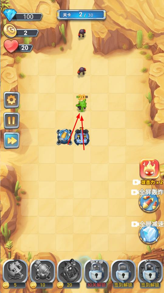 3、完成關(guān)卡獲取鉆石、金幣,解鎖新炮臺(tái)(30關(guān)、簽到解鎖),升級(jí)強(qiáng)化,推進(jìn)后續(xù)關(guān)卡。