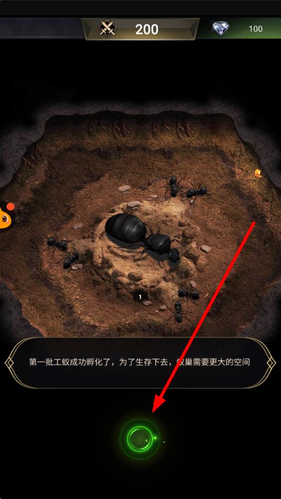 2、通過點(diǎn)擊相應(yīng)按鈕,派遣螞蟻隊伍進(jìn)行資源采集、建造蟻巢等操作,發(fā)展壯大蟻群勢力。