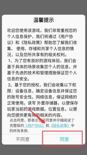 1、首次啟動需閱讀并確認用戶協(xié)議條款,勾選同意選項后自動跳轉(zhuǎn)至游戲主界面。