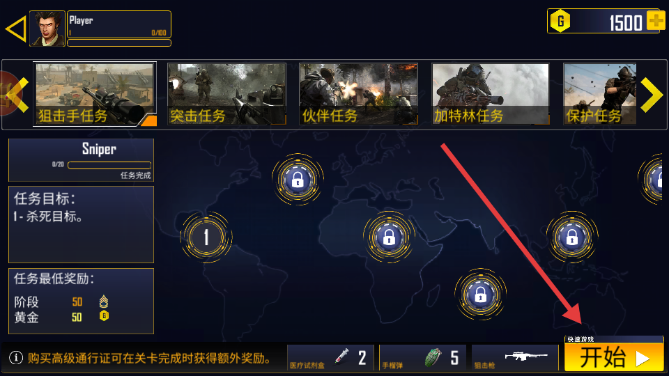 2、每關(guān)開始前記得翻武器庫,選噴子還是選AWP取決于你想把敵人打成篩子還是爆頭藝術(shù)家。