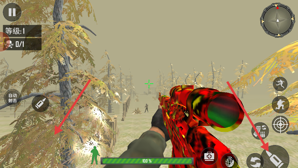 1、左手控制角色蛇皮走位躲避子彈,右手滑動(dòng)屏幕讓準(zhǔn)星和敵人腦袋來場(chǎng)親密接觸。