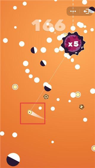 2、操控引力球在宇宙中跳躍時(shí),需時(shí)刻留意中心區(qū)域和黑色物體,通過(guò)點(diǎn)擊屏幕讓球球精準(zhǔn)落在安全平臺(tái)上。