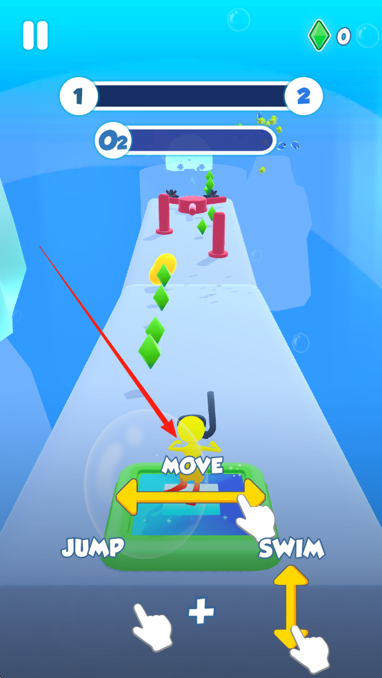 1、觀察海底地形與障礙物分布,優(yōu)先規(guī)劃安全路線,通過精準運用游泳技巧與道具組合,巧妙突破障礙,確保高效完成闖關(guān)目標。