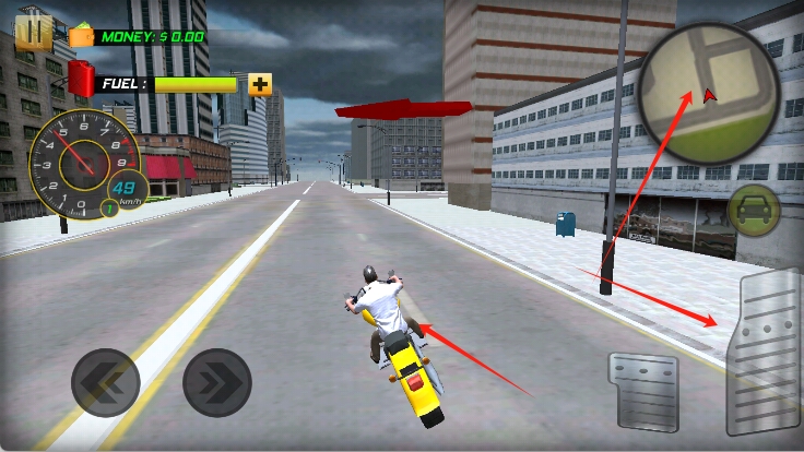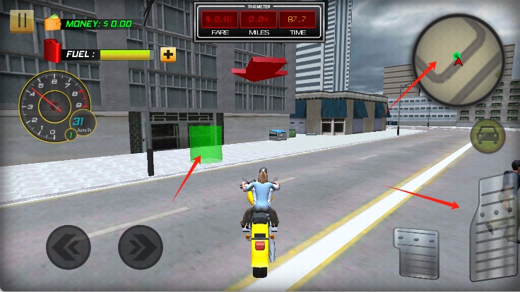 2、駕駛與操作:通過虛擬按鍵控制摩托車行駛,注意交通規(guī)則與信號燈,平穩(wěn)起步與停車以提升乘客滿意度。