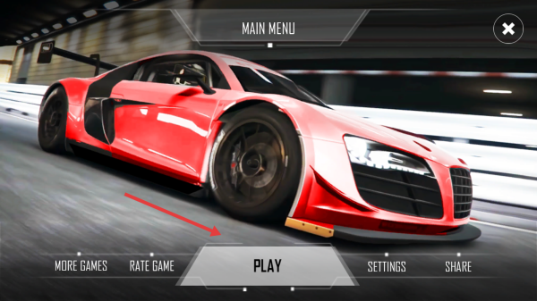 1、在主菜單點擊“PLAY”,進(jìn)入關(guān)卡選擇,選“01”號解鎖關(guān)卡,開啟賽車競速挑戰(zhàn)。