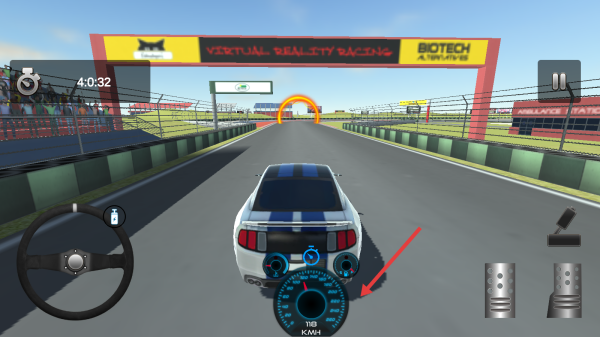 3、比賽中,借方向盤控方向,留意儀表盤速度,避賽道障礙,沿路線沖,爭取好成績。