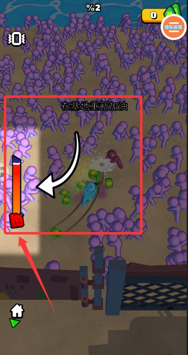 2、地圖左上角設(shè)有安全基地,角色返回此處可加油補(bǔ)充各類生存物資。