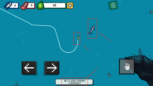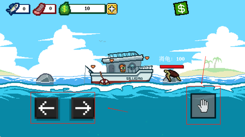 2、左側(cè)是控制船只移動的按鈕,可操控船只在海域中移動尋找合適釣點;右側(cè)設(shè)有拋竿與收線功能鍵,用于完成拋竿和收線動作。