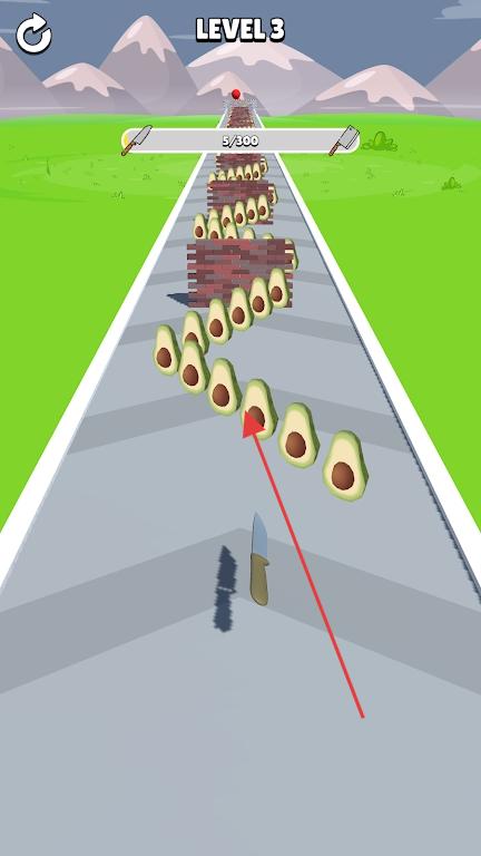 3、挑戰(zhàn)高難度關卡,應對密集的限定障礙群和強大對手,憑借快速點擊與靈活移動,在攻擊次數內破除障礙、擊敗敵人,解鎖高級刀具和隱藏賽道。