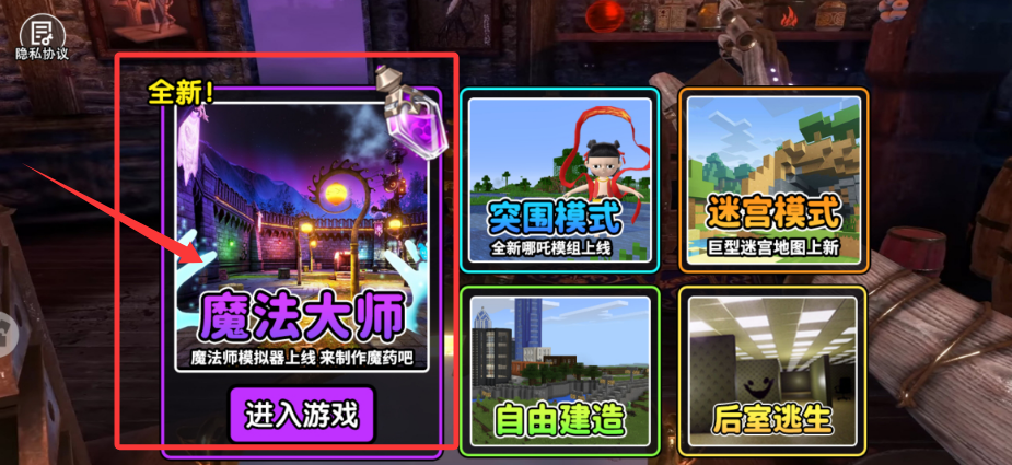 1、游戲主界面提供多種玩法模式,需選定魔法研習(xí)才能開啟魔幻修行之旅。