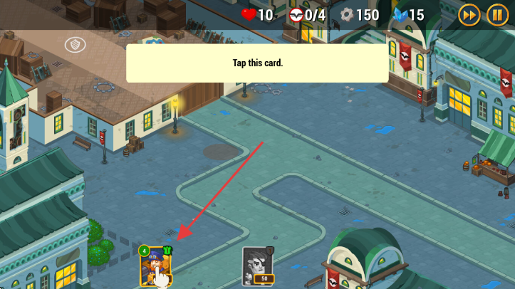 3、戰(zhàn)斗教程中,點擊下方指定的英雄卡牌,部署作戰(zhàn)單位。