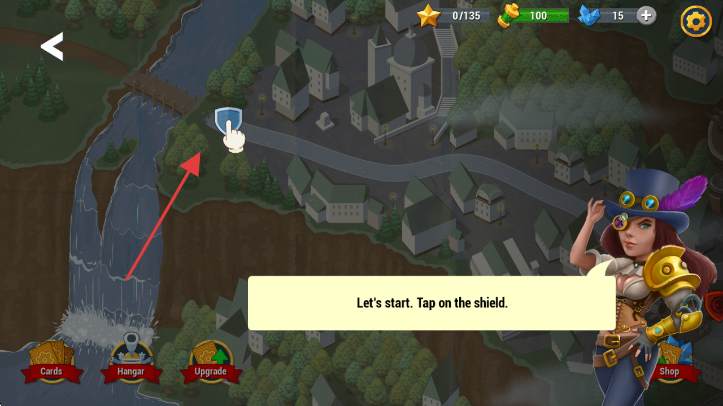 2、在地圖界面,點擊提示的藍色盾牌圖標,開啟關卡。