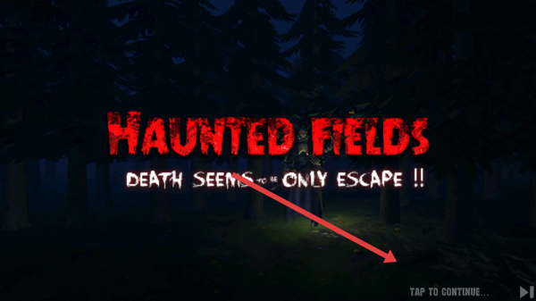1、點(diǎn)擊“TAP-TO-CONTINUE...”,跳過(guò)標(biāo)題頁(yè),進(jìn)入《Haunted-Fields》,準(zhǔn)備體驗(yàn)恐怖逃生玩法。