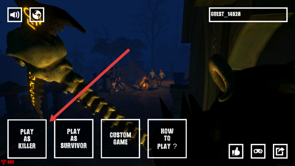 3、模式選擇頁(yè),點(diǎn)擊【PLAY-AS-KILLER】,扮演殺手角色,在幽靈場(chǎng)景中,執(zhí)行獵殺任務(wù),推進(jìn)游戲。