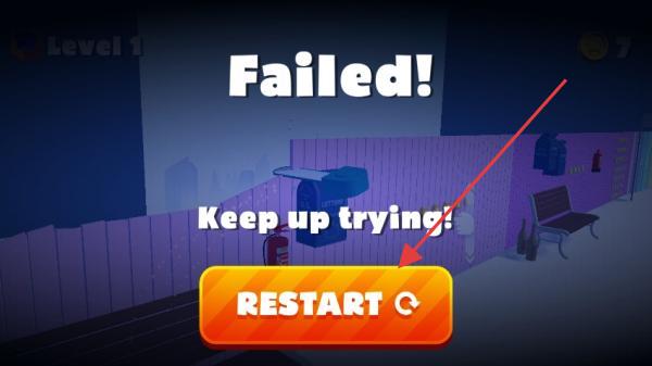 3、若顯示【Failed!】,點擊【RESTART】重新挑戰(zhàn),總結(jié)失敗原因,調(diào)整操作策略,再次嘗試通關。