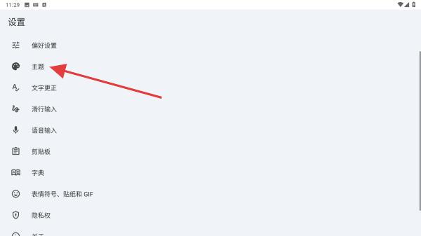 1、打開Gboard的設(shè)置界面,找到并點擊主題的選項。