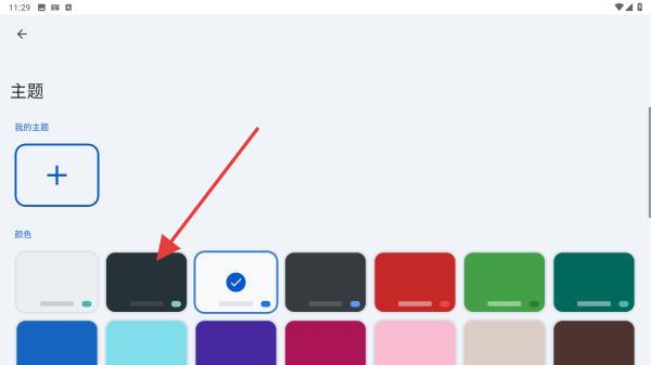 2、在主題頁面中,找到顏色的區(qū)域,點擊想要切換的主題顏色。