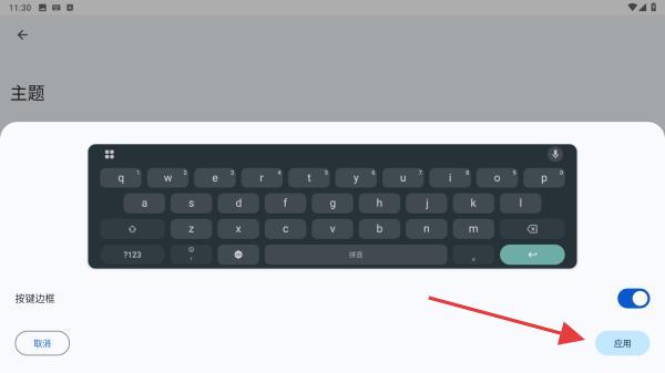 3、點擊顏色后會彈出預(yù)覽窗口,顯示鍵盤主題效果,確認(rèn)后點擊右下角應(yīng)用按鈕,即可完成主題顏色切換。