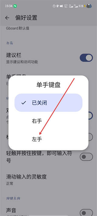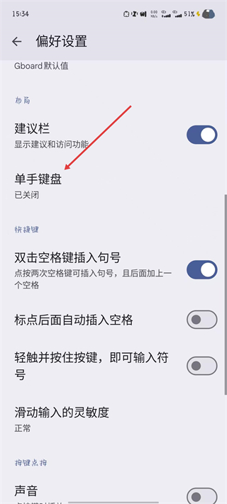 2、在偏好設(shè)置頁面,點擊單手鍵盤選項。
