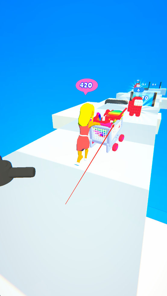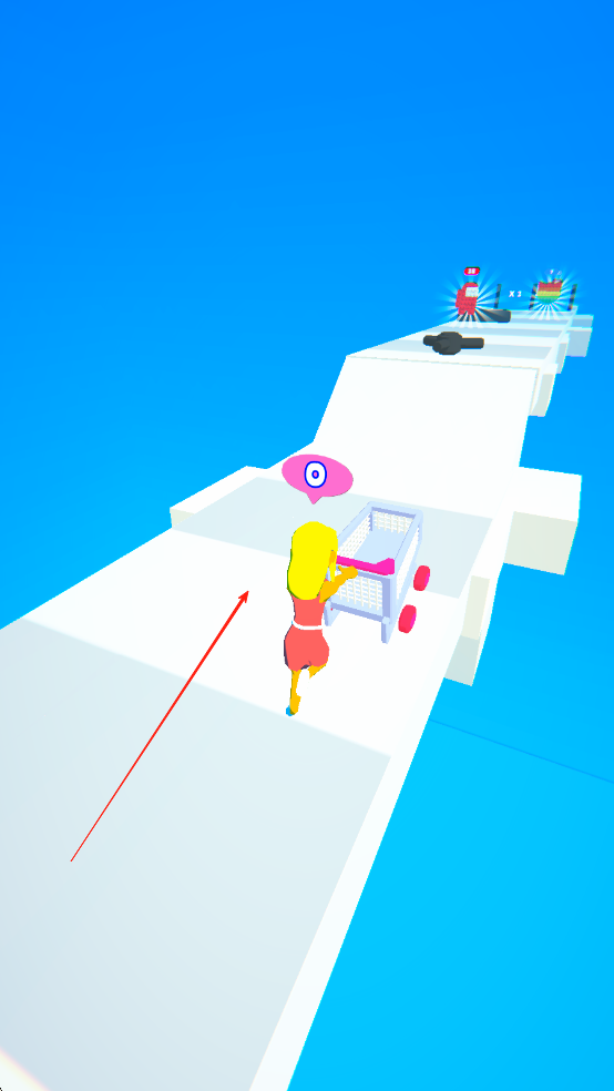1、進(jìn)入游戲后,在初始賽道中,通過左右滑動屏幕操控購物車方向,躲避前方出現(xiàn)的障礙物,讓購物車保持平穩(wěn)飛馳,積累基礎(chǔ)分?jǐn)?shù)。
