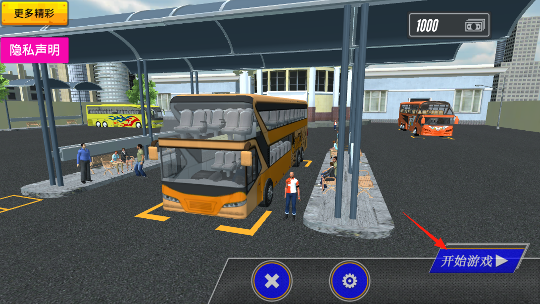 1、進入巴士模擬游戲初始場景,點擊“開始游戲”,開啟巴士駕駛之旅,借場景選擇機制,從車站出發(fā),準備迎接乘客運輸任務,體驗模擬駕駛的基礎流程。