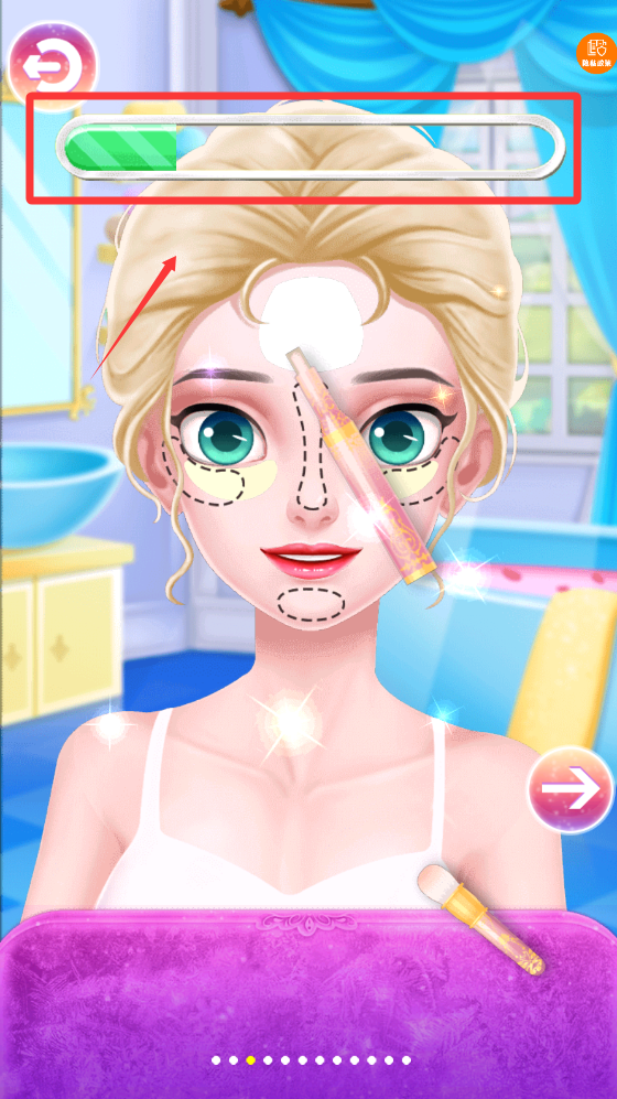 3、上面顯示有進度條哦,綠色的進度條加載滿了就完成妝容。