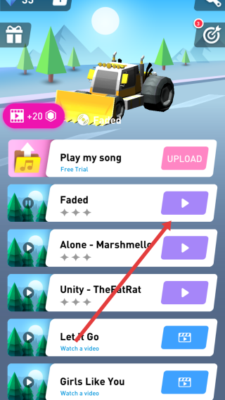 3、在音樂(lè)播放頁(yè),選擇“Faded”等曲目,點(diǎn)擊播放按鈕,駕駛賽車時(shí)可同步聽(tīng)音樂(lè),提升游戲體驗(yàn),還能上傳自定義歌曲。