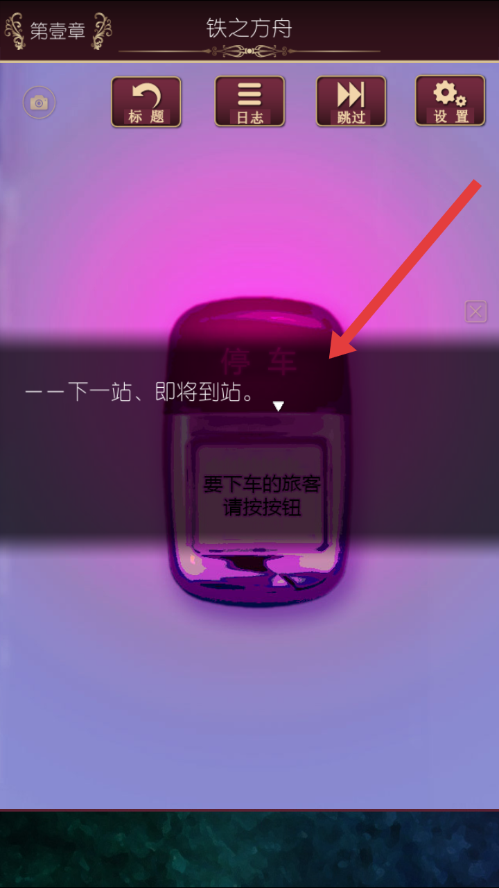 1、點(diǎn)擊紫色按鈕裝置,觸發(fā)“下一站、即將到站”的劇情提示,結(jié)合頂部【標(biāo)題】【日志】等按鈕,可隨時(shí)回溯或記錄信息。