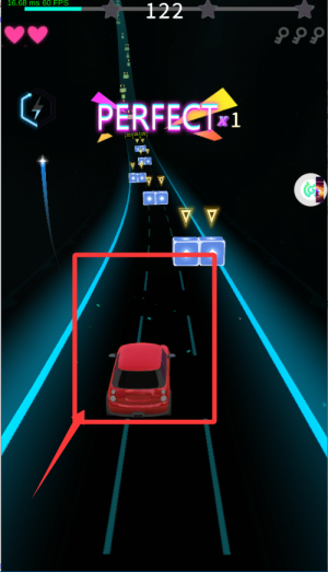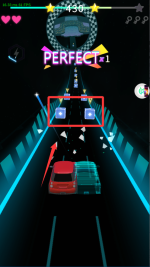 2、注意賽道上的音符方塊,按照背景音樂(lè)的節(jié)拍撞擊它們,連續(xù)精準(zhǔn)操作可以積累連擊獎(jiǎng)勵(lì)分?jǐn)?shù),同時(shí)解鎖更多賽車(chē)技能。