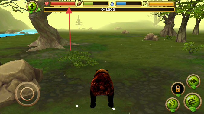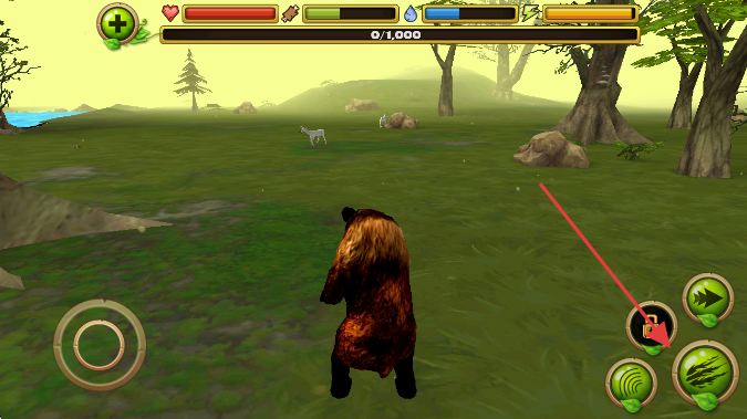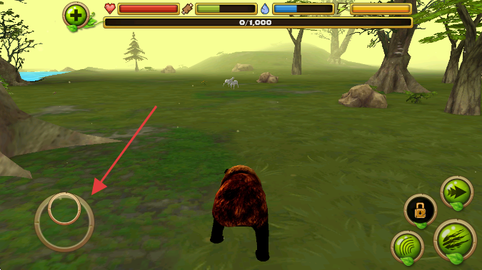 2、滑動(dòng)左側(cè)虛擬搖桿,操控棕熊在森林移動(dòng)。